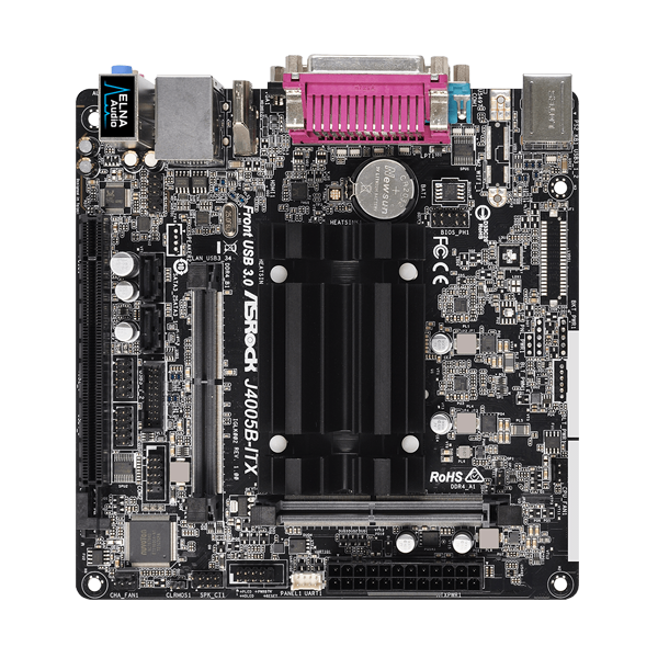 ASRock J4005B-ITX Intel® Quad-Core Pentium Processor J4005 mini-ITX motherboard - front view ASRock J4005B-ITX Intel® Quad-Core Pentium Processor J4005 mini-ITX motherboard - I/O connectors view ASRock J4005B-ITX Intel® Quad-Core Pentium Processor J4005 mini-ITX motherboard - side view