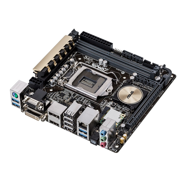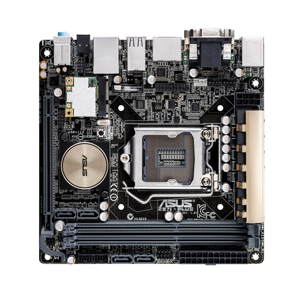 ASUS Z97I-PLUS mini-ITX - LGA1150 / CPU Intel Core i3/i5/i7 compatible, mini-ITX motherboard - front view ASUS Z97I-PLUS mini-ITX - LGA1150 / CPU Intel Core i3/i5/i7 compatible, mini-ITX motherboard - I/O connectors view ASUS Z97I-PLUS mini-ITX - LGA1150 / CPU Intel Core i3/i5/i7 compatible, mini-ITX motherboard - angle view ASUS Z97I-PLUS mini-ITX - LGA1150 / CPU Intel Core i3/i5/i7 compatible, mini-ITX motherboard - 1x M.2 Socket (M KEY) view
