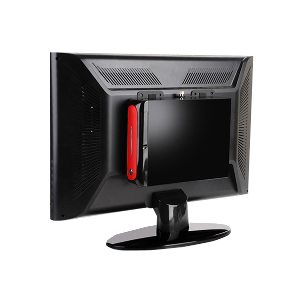 Fully Assembled Car PC with M250 Mini-ITX Enclosure - front view Mini-Box.com picoPSU-80 + 60W Adapter Power Kit AsRock Q1900-ITX with Intel J1900 2.0 GHz Quad Core Bay Trail Celeron - perspective view M250 Universal Mini-ITX enclosure Vesa Mounting different view - back of the LCD monitor